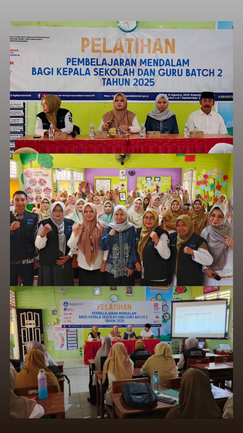 BGTK NTB – Balai Guru dan Tenaga Kependidikan (BGTK) Provinsi Nusa Tenggara Barat kembali menyelenggarakan Pelatihan Pembelajaran Mendalam (PM) Batch 2 di sejumlah kabupaten, antara lain Kabupaten Lombok Tengah, Kabupaten Sumbawa Barat, dan Kabupaten Sumbawa. Kegiatan ini diikuti lebih dari 580 guru dan kepala sekolah dari berbagai jenjang pendidikan, didampingi oleh puluhan fasilitator berpengalaman. Pelatihan ini menjadi program prioritas transformasi pembelajaran BGTK NTB yang menekankan keterampilan berpikir tingkat tinggi (higher order thinking skills), literasi digital, pembelajaran kontekstual, serta penguatan karakter positif peserta didik.